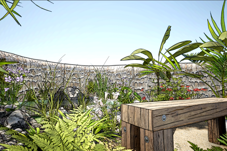 Step into your green oasis, where encouraging biodiversity and creating a calm and tranquil space in which to relax is at the heart of the design. Planting schemes will have large lush foliage to create that ‘jungle’ style feel, whilst still incorporating nectar rich planting to encourage local wildlife to the garden.